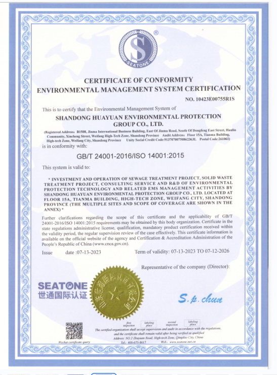 環境管理體系認證證書